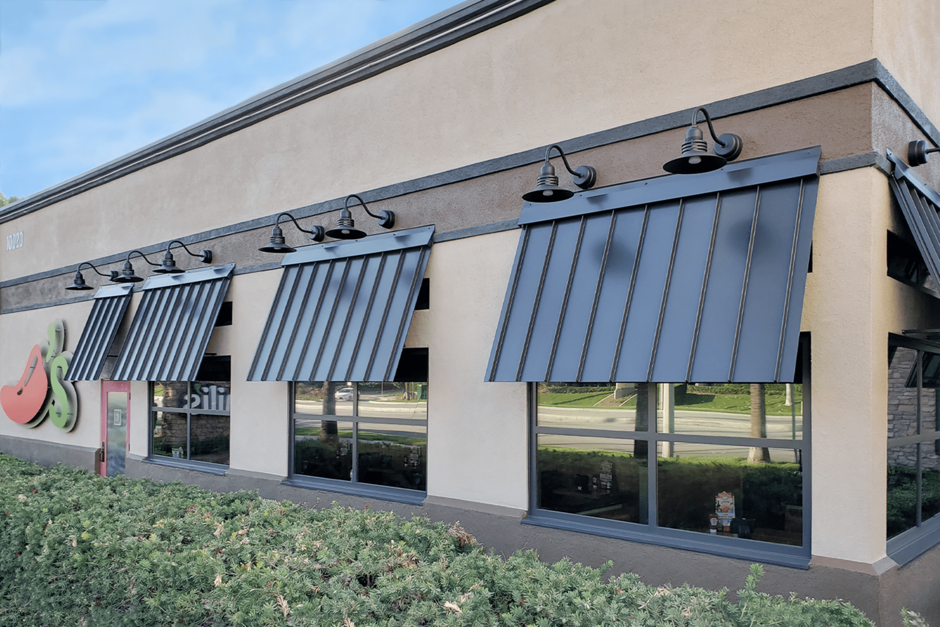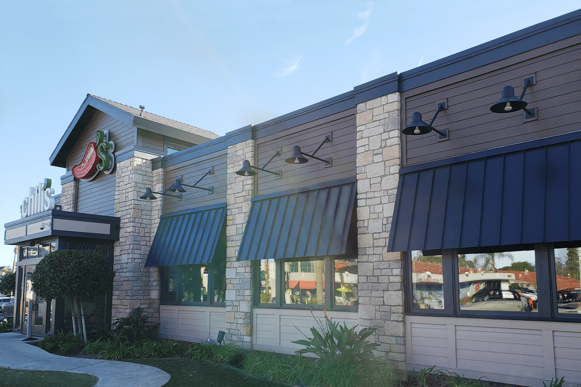 Chili’s Grill & Bar features Taylor Metal’s Clip-Lock™ panel which is manufactured in California. The panel style is flat pan, gauge is 24, width is 11-1/2″ and the color is Black (Kynar 500®). Clip-Lock™ Standing Seam delivers a panel with strong clean continuous grace, together with unequaled quality. This provides you a weather-tight roof to last a lifetime. Clip system allows for long panels, without the needs for laps.