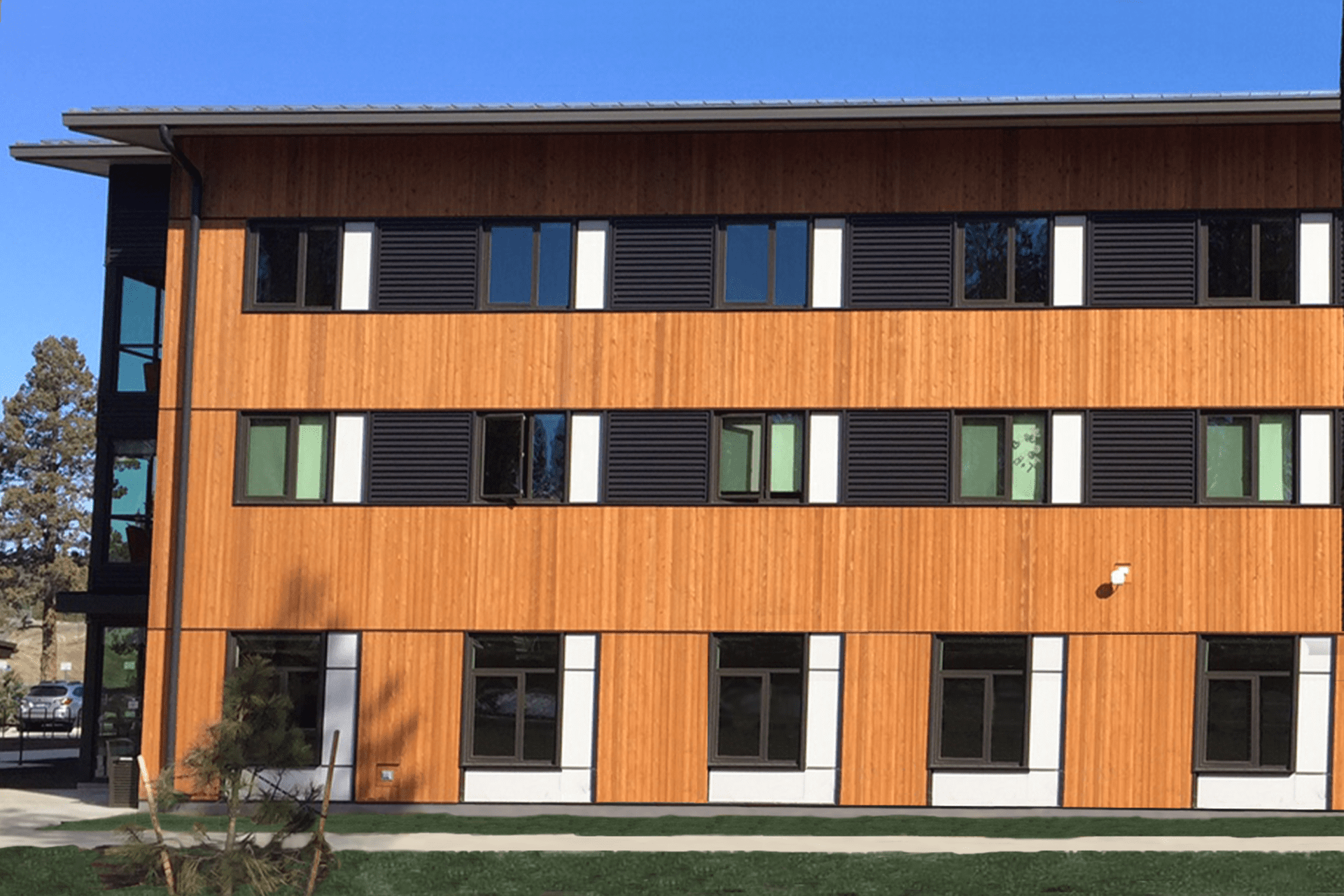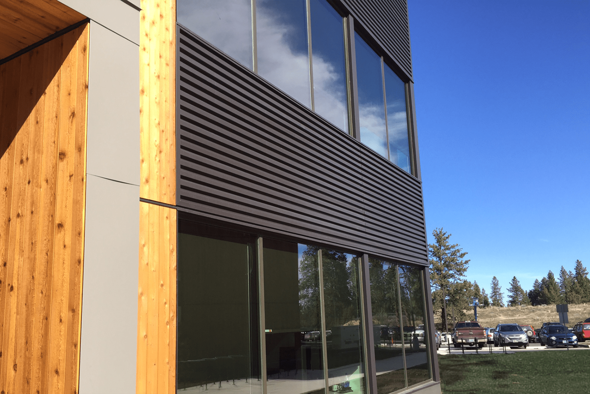 The OSU Cascades Campus features Taylor Metal’s Contour Series™ C-5 panel. The gauge is 24 and the color is Dark Bronze (Kynar 500®). Contour Series™ offers a variety of panels, making them interchangeable. Contour Series™ can be installed horizontally or vertically, with concealed fastener attachment.