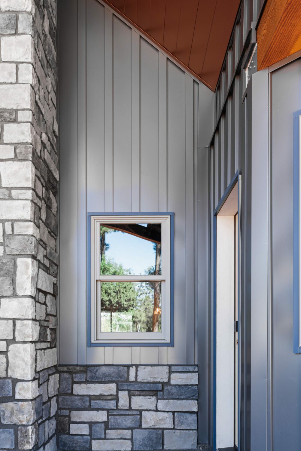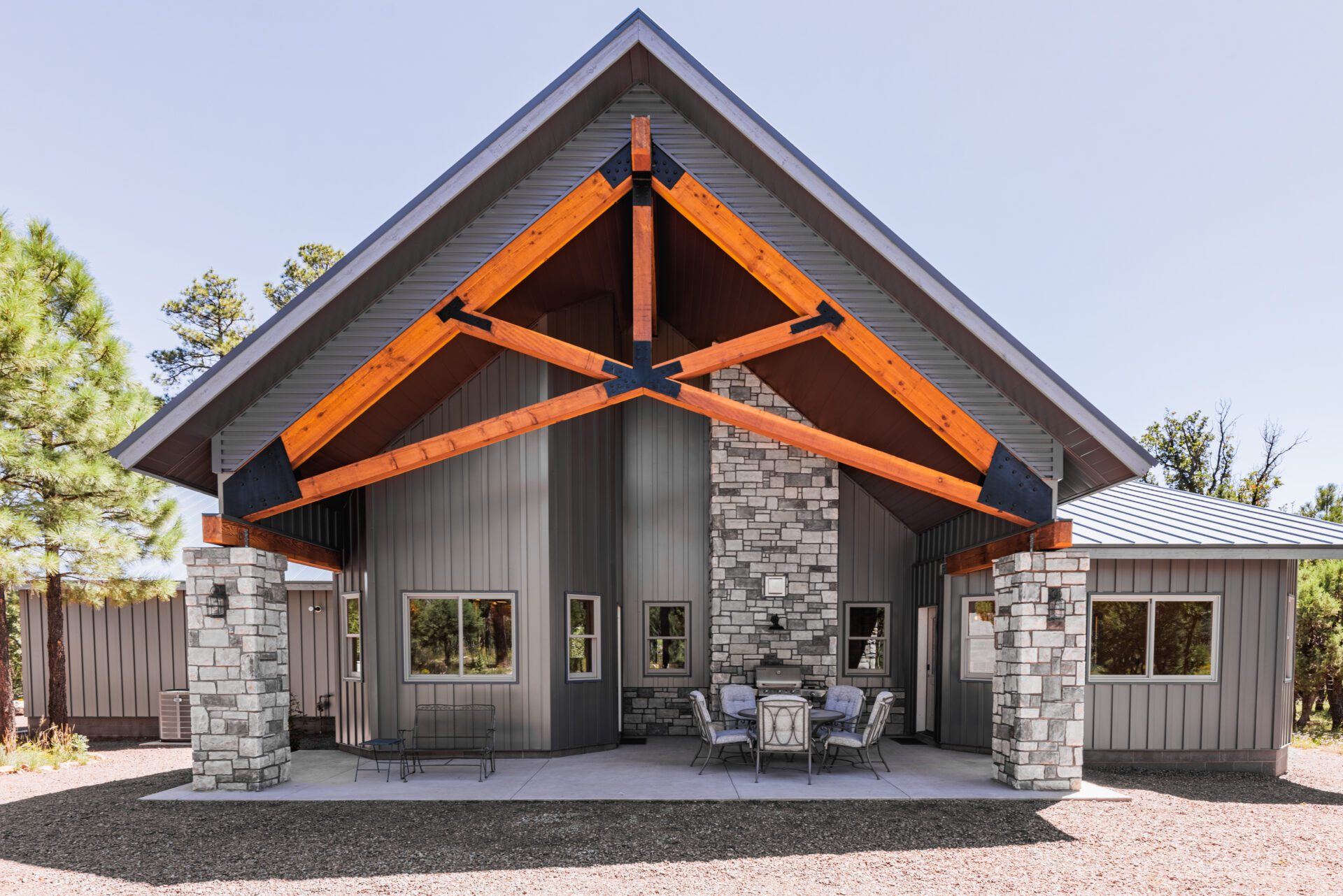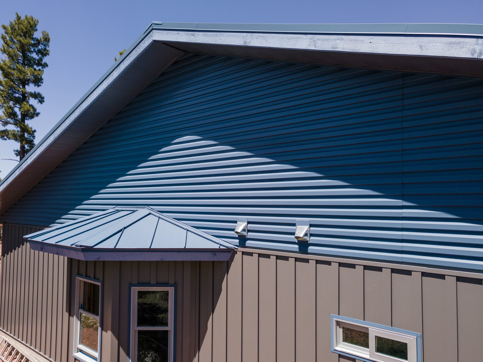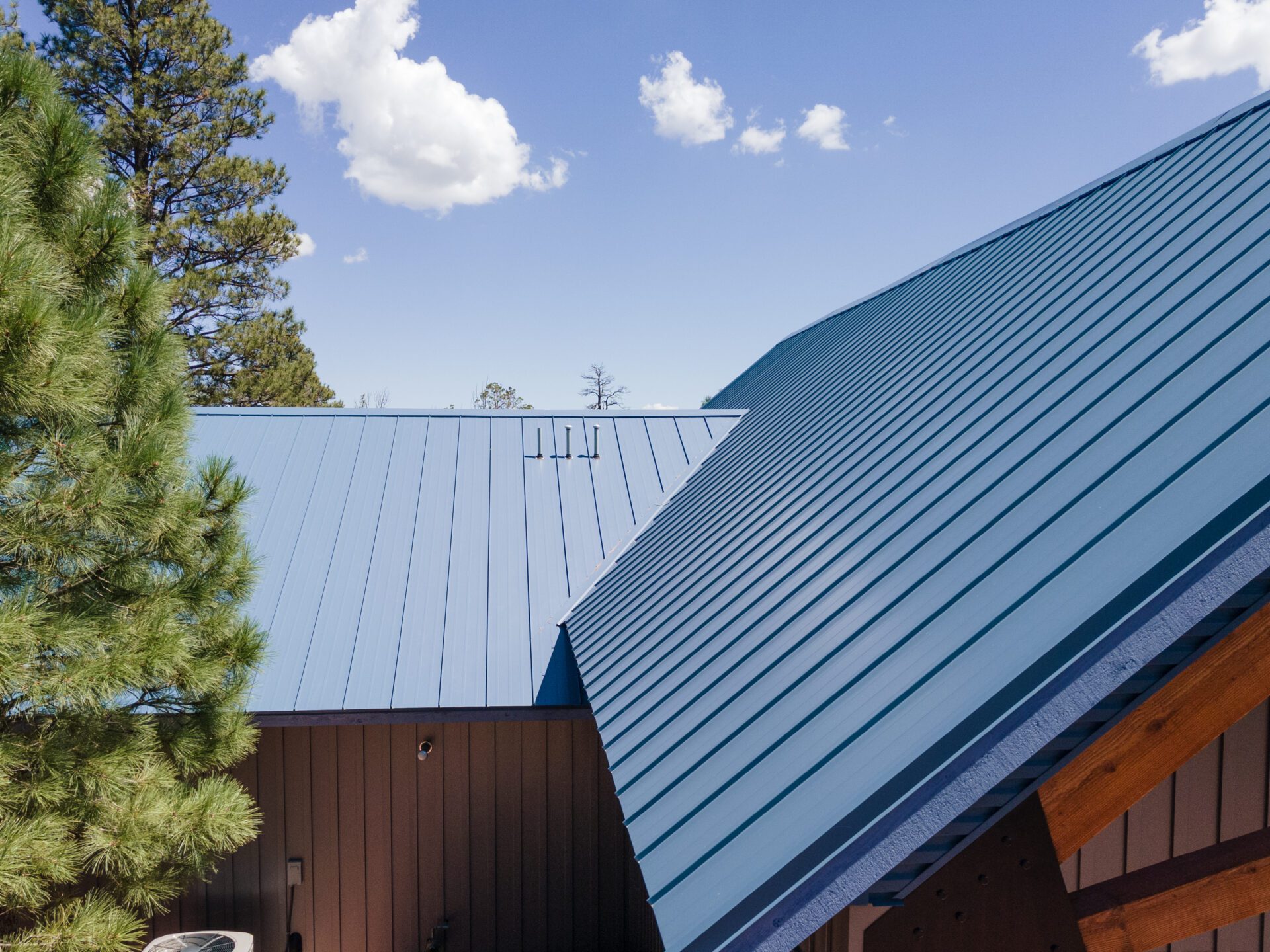 The Happy Jack Cabin, located in Arizona, is a residential project that features multiple Taylor Metal panels! Clip-Lock 100™ standing seam panel is on the roof with a Tahoe Blue color finish. Classic Series C-1 in Tahoe Blue and Elevated Series ELV-37 in Weathered ZInc are featured on the exterior walls, and SmoothWall™ is utilized as a soffit panel both outside and inside in Weathered Zinc and Copper Penny.