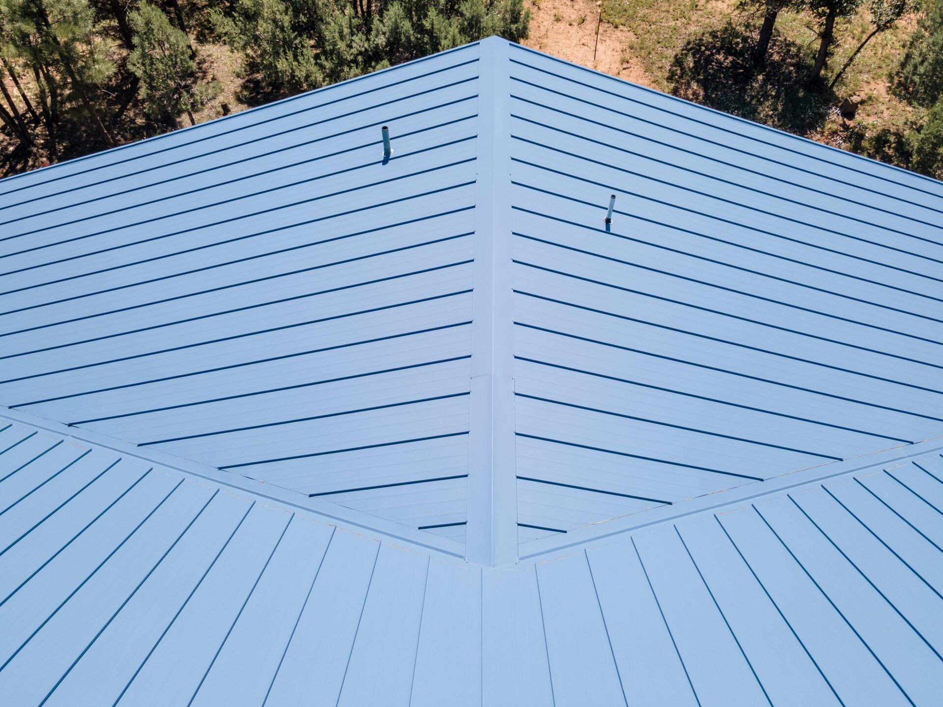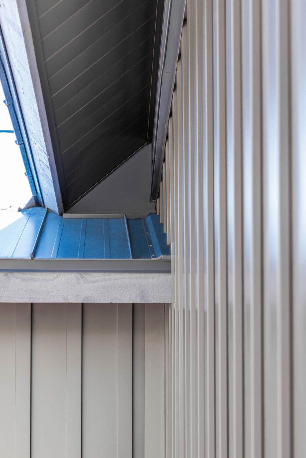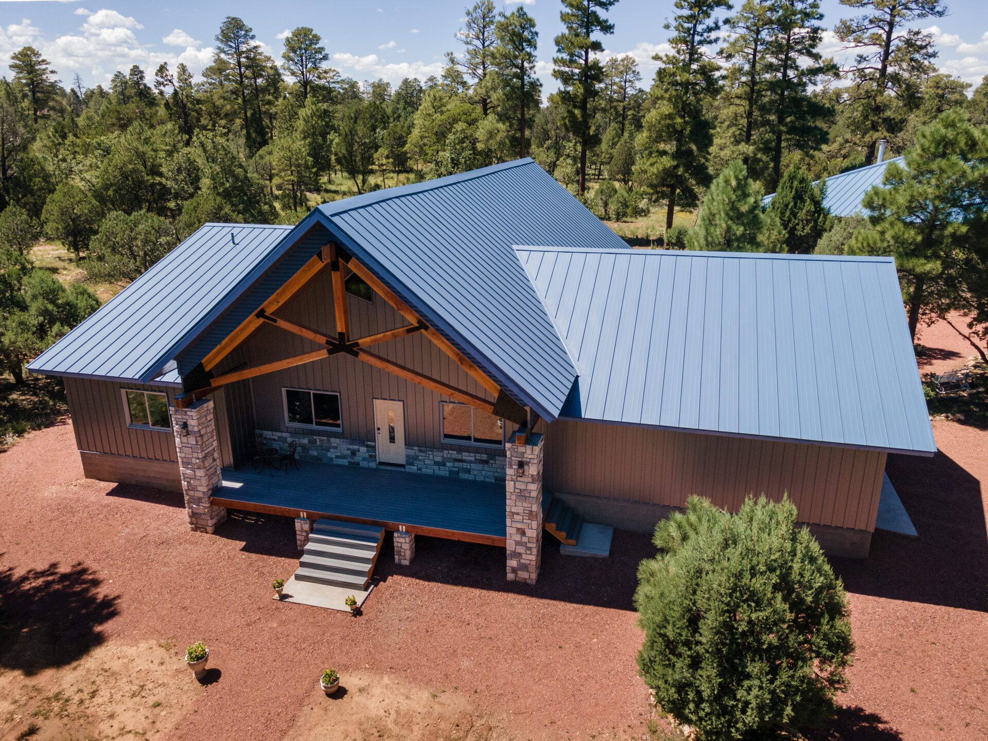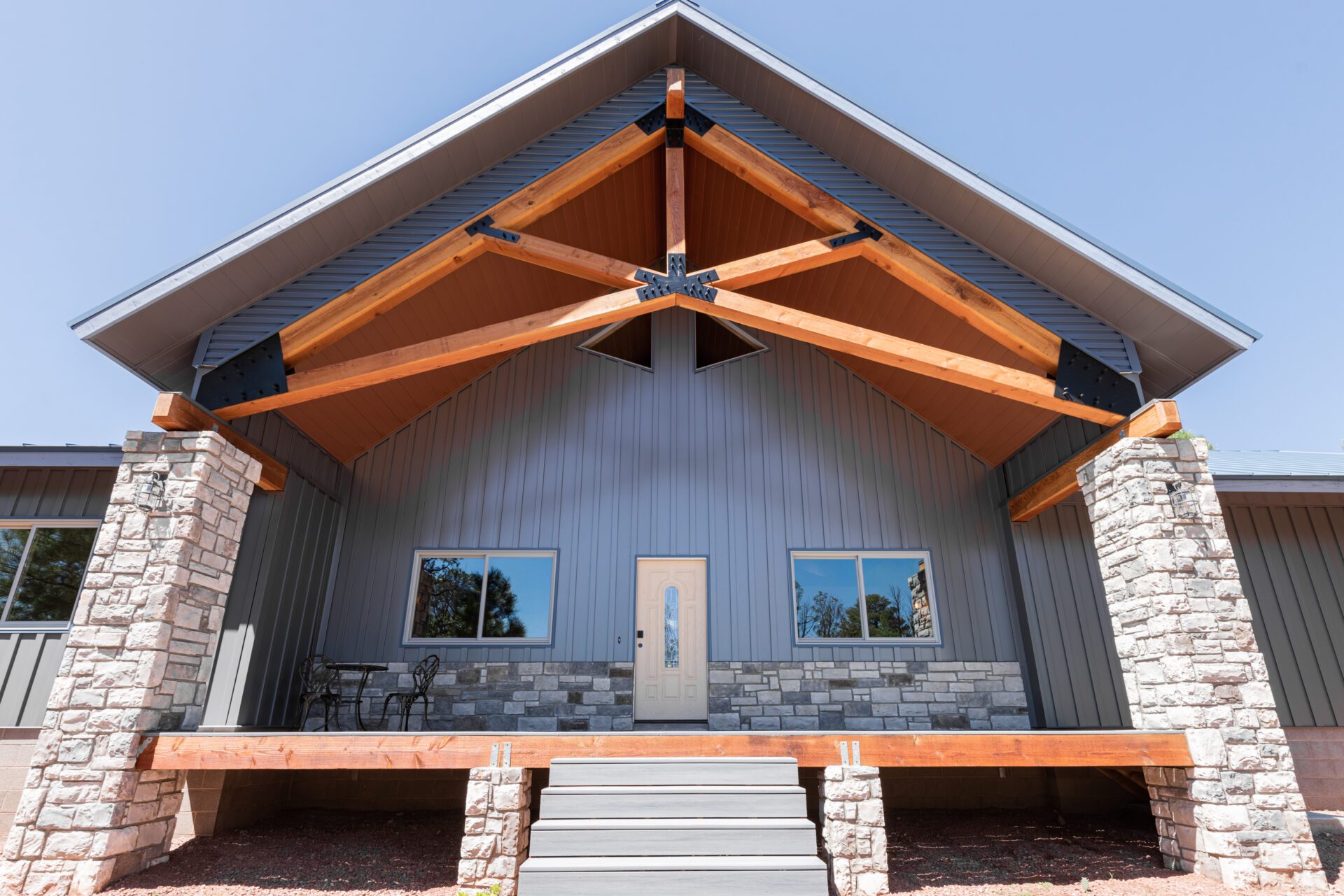 The Happy Jack Cabin, located in Arizona, is a residential project that features multiple Taylor Metal panels! Clip-Lock 100™ standing seam panel is on the roof with a Tahoe Blue color finish. Classic Series C-1 in Tahoe Blue and Elevated Series ELV-37 in Weathered ZInc are featured on the exterior walls, and SmoothWall™ is utilized as a soffit panel both outside and inside in Weathered Zinc and Copper Penny.